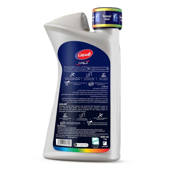 کولانت کاسپین مطابق با استاندارد شماره ۳۳۸ ایران و با فناوری OAT، آماده مصرف و بدون نیاز به رقیقسازی با آب میباشد. این ضدیخ در بهینهترین نسبت (۵۰ درصد حجمی) ترکیب شده است و در محدوده دمایی ۳۷- درجه سانتیگراد تا ۱۱۲+ سانتیگراد قابل استفاده است. √ضدجوش، ضدزنگ، ضد رسوب، ضدخوردگی و ضدخورندگی. √آماده مصرف و بدون نیاز به رقیقسازی با آب √قابل استفاده در کلیه فصول سال