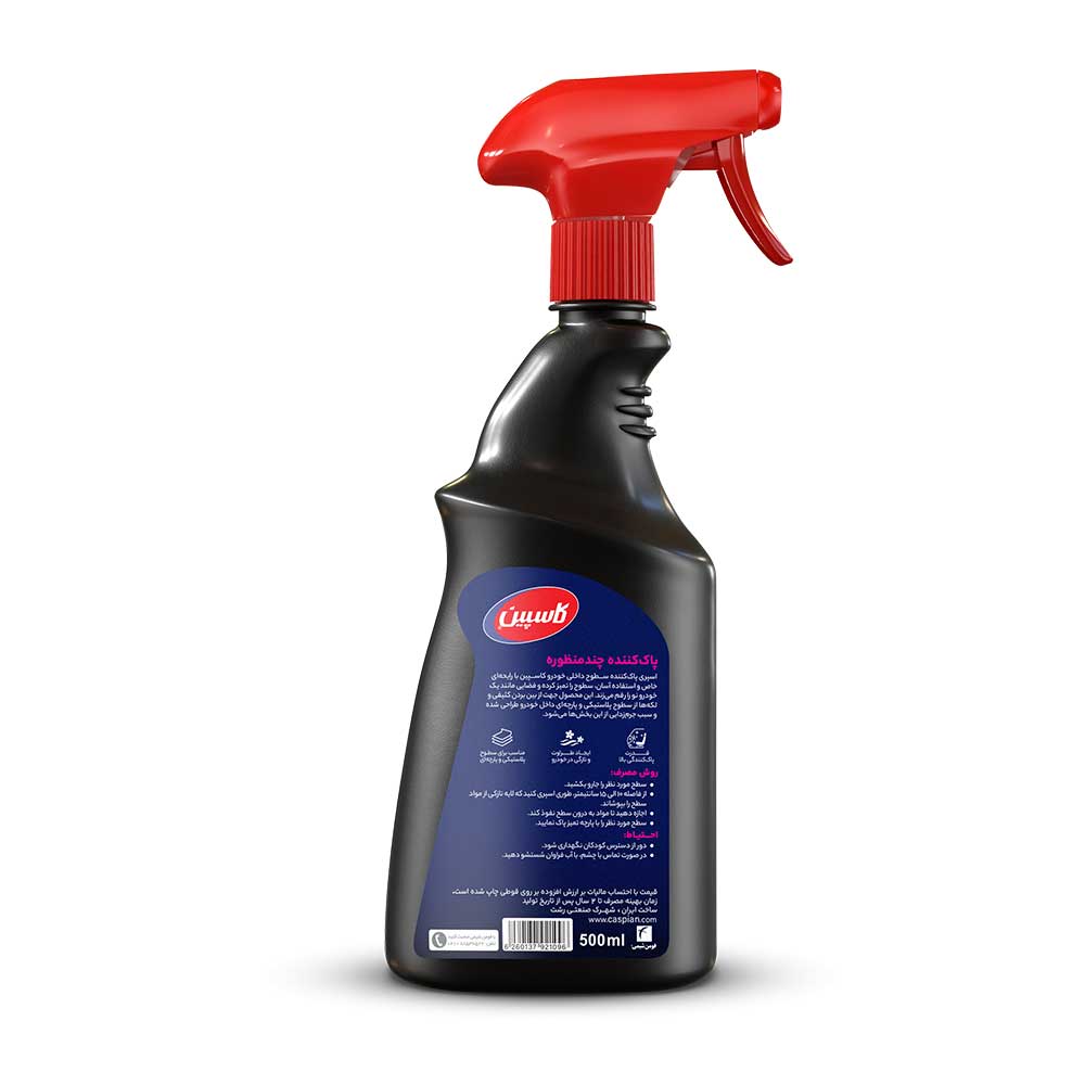 اسپری پاککننده چندمنظوره کاسپین با رایحه خاص و استفاده راحت، جهت ازبینبردن کثیفی و لکهها از انواع سطوح داخل خودرو مانند سقف، موکت، کمربندها و انواع سطوح پلاستیکی طراحی و ساخته شده و سبب جرمزدایی از این سطوح میشود. √بدون آثار لک بعد از خشک شدن √خوشبوکننده فضای داخل خودرو √قدرت تمیزکنندگی بالابدون آسیب به سطوح