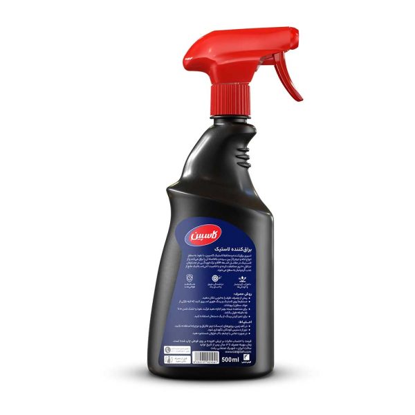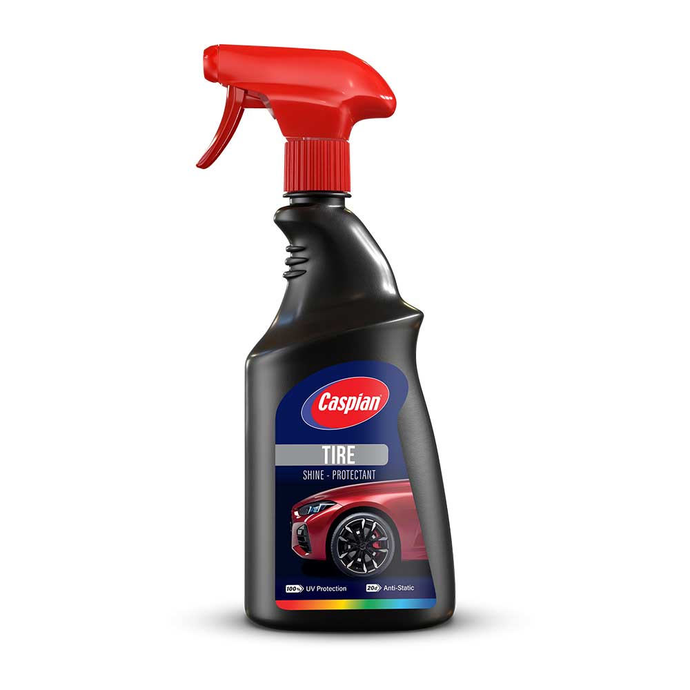 اسپری براقکننده لاستیک کاسپین با نفوذ به سطح لاستیک انواع لکه و جرم را از بین برده و بلافاصله آن را براق میکند و از لاستیک در مقابل اشعه UV و ترکخوردگی محافظت کرده و با خاصیت آنتی استاتیک مانع از جذب گردوغبار به سطح میشود.